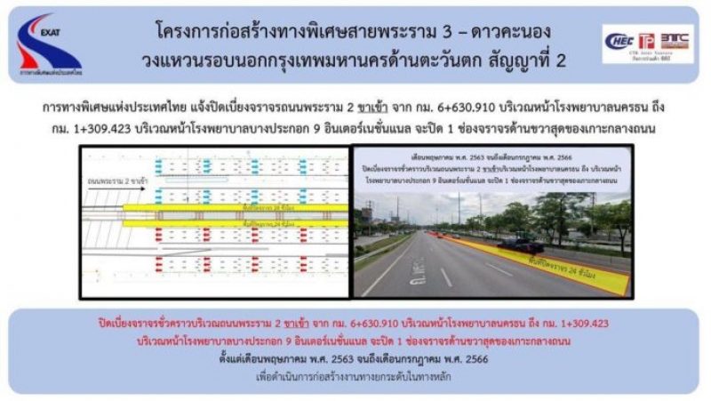 ทั้งนี้ กทพ. ได้ทำการติดตั้งป้ายแจ้งการจราจรก่อนถึงพื้นที่ก่อสร้างและติดตั้งไฟสัญญาณไฟจราจรต่างๆ ป้ายประชาสัมพันธ์ เพื่อให้ผู้ใช้เส้นทางนี้ได้ทราบ