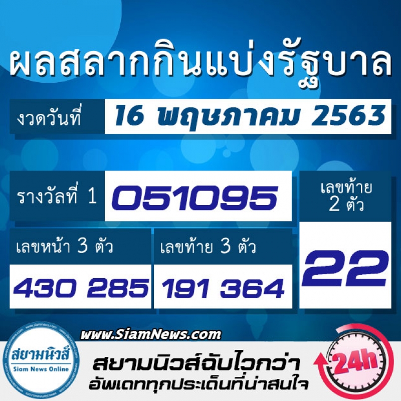ออกไปเป็นที่เรียบร้อยแล้ว สำหรับการออกรางวัลประจำวันที่ 16 พฤษภาคม 2563 โดยเลขที่ออกคือ